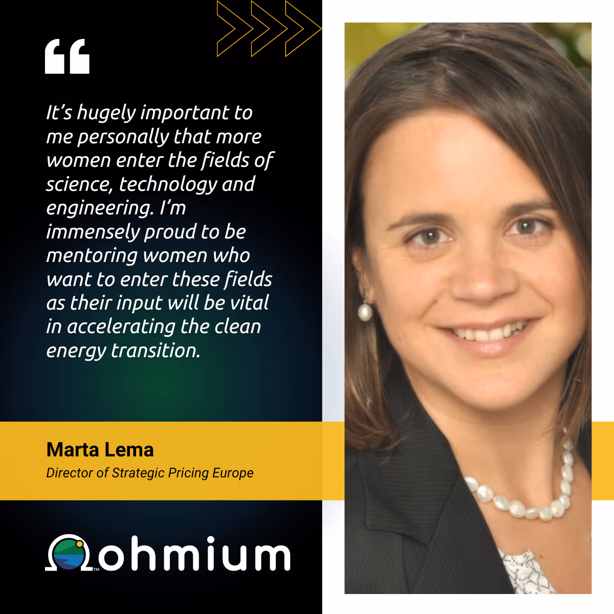 Marta believes if organizations truly want to embed women’s equality within their corporate culture, they must have a clear vision and strategy that actively promotes gender equality and is owned and embraced throughout the entire organization. It’s important to have different perspectives and diverse demographics for teams to perform to their full potential and this is something that is very evident across the multifunctional and multiregional teams at Ohmium.